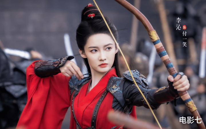 第一女射手付一笑(李沁 饰),穿着一身红衣,弯弓拉箭对准了敌方大将——夙砂国大皇子凤随歌(陈哲远 饰)。